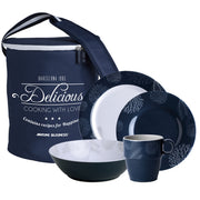 The 24-piece melamine kitchenware pack is practical melamine set for 6 people. All the pieces are made of unbreakable melamine and fit inside the multi-purpose basket that can be used to store melamine kitchenware, clothing or nautical accessories.