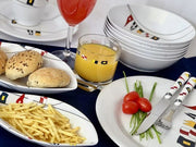 The 16 piece Regata melamine tableware pack for boats is practical melamine set for 4 people. It is made up of 4 dinner plates, 4 dessert plates, 4 soup bowls and 4 stackable mugs.
