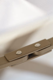 The stool. The structure is in solid powder-coated aluminum and available in the colours: White, Moka and Grey. The seat is structural, in white padded polyester, easily washable and stabilized against ultraviolet rays, so it does not yellow in the sun. The armrests are imitation teak. The pattern and colour are both similar to teak, but are in fact a synthetic resin, also impervious to ultraviolet light, which will always stay as bright as the day of production – it won’t oxidise or change colour when exposed to sunlight or any kind of weather. It does not absorb substances and can be cleaned with a wet cloth. The armrests are made of Synteak – a synthetic resin that reproduces the colour and veins of natural teak. A safety catch prevents any accidental opening and ensures exceptional stability even with strong pitching and rolling. A cushion made of acrylic fabric or synthetic leather can be placed on the seat or used as a footrest. A synteak top can be placed on the stool and thus transformed into a side table.