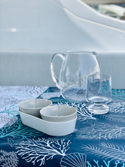 This resin tablecloth Coastal collection by Marine Business, is not rigid plastic tablecloth. Thanks to its innovative resin finish, the tablecloth is waterproof but soft to the touch, avoiding stains penetrate into the fabric.