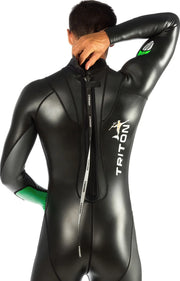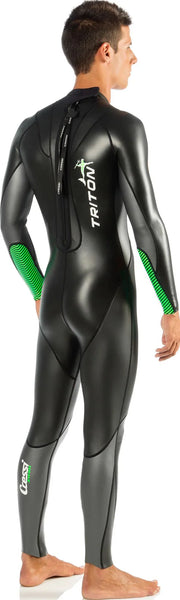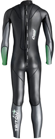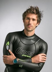 Wetsuit made of 1. 5 mm neoprene ultraskin for swimming in open water. For safety, it has a special insert in the forearms, fluorescent green for men or fluorescent orange for women, that allows immediate sighting during the activity. It also features a key pocket and a label for a name