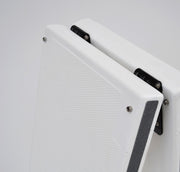 Monoblock technology for extra resistance. Honeycomb structure core for strength and rigidity with outside shell in fiberglass combined with vinylester and carbon. Non-slip walkway for safe boarding. Floating and lightweight, sturdy and UV-protected, scratch resistant. Gangway comes with wheels on dock side and deck securing pin + deck socket support on boat stern side. Stanchions and handrail are optional extras.