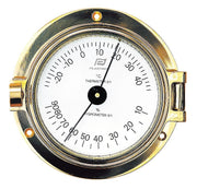 Front facia Ø : 7.5 cm.  Base Ø : 12 cm. Barometers : high sensitivity aneroid barometers, with an entirely metallic chain. Clocks : quartz mechanism. Bevelled glass edge.