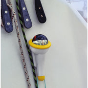 Can be taken away and moved around the boat : it is simply clipped on a smooth-edge bracket, designed not to catch sails or hurt fingers.