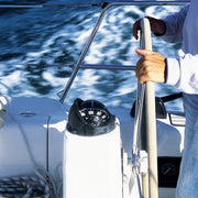 Sailboats 9 m and above (30 ft+). Flushmount compass for steering console or steering wheel pedestal, with or without binnacle. Large flat card, ideal when steering standing. Articulated protective hood in 3 sliding parts. SOLAS-MED approved: equally suitable for professional fishing boats and commercial vessels.