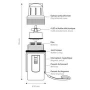 4-LED flashlight, floating. Ideal for boating, diving, jet ski. 150-hour runtime. Waterproof up to 100 metres