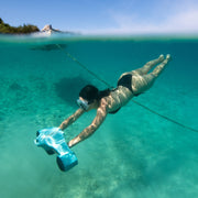 This premium package includes everything you need to elevate your experience: a durable padded bag for transport and a snorkel set for added versatility. Powered by a long-lasting battery with a 4-hour charge time and up to 2 x 37.5 minutes of run time, this seascooter guarantees enduring adventures.