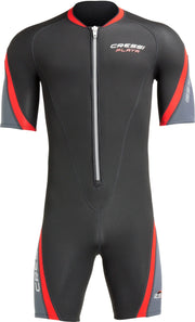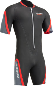 The Cressi Playa 2.5mm shorty wetsuit features a front zip, flatlock seams, and anatomical cut for men and women. Made from double-lined neoprene, it offers comfort and durability—ideal for snorkeling, swimming, tropical diving, sailing, and all water sports.