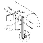 Detachable and swing-up wheels, to mount on transom.Suitable for all pneumatic boats with rigid transom.Wheels swing up easily and instantly. When sailing, the lateral movement of the engine is not hindered by the tracks locked upright.Supplied in pairs with mounting instructions and accessories.Puncture-proof wheels.