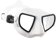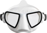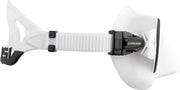 Atom is a radical maks, with incredible low internal volume, thought and built for free-diving. It is a frameless maks. Construction material has been reduced to the minimum. Inside the silicon facial a stiff core is co-stamped with the two lenses, giving just the right rigidity to the maks. This semi-rigid core substitutes the usual external plastic frame and allowed us to reduce the internal volume of the maks in an unseen way until today. Another feature of atom is the ergonomic shape of the nose. Two small cavities, carved by the nostrils, facilitate the action of compensation. This makes the maks extremely stable during the dive. Atom will not move when you compensate pushing atom is the perfect maks for the expert free-diver and spear-fisher, who wants the maximum performance from its gear