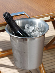 Having a glass of champagne on board in complete comfort is possible thanks to the hanging champagne bucket in stainless steel by MARINE BUSINESS.