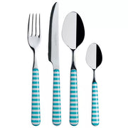 The 24-piece cutlery set (6 people) is made from high-quality 18/0 stainless steel with an ABS handle with turquoise nautical stripes.