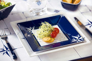 The square dessert plate from the NORTHWIND collection has a simple but elegant nautical style.
