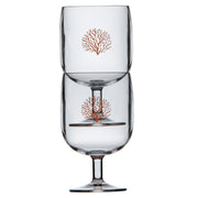 The wine cup of Harmony Mare Coral Collection is made of Ecozen, a new high-end material, probably the best for the manufacture of synthetic glassware, ultra resistant to shocks and with a crystal appearance.
