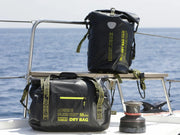 The THALASSA collection of waterproof dry bags features several models of barrel bags, rucksacks, sports bags, vanity cases and document sleeves. Our dry bags currently come in two lines: a more nautical one in blue, white and a splash of red; and a more modern line in black with neon yellow accents.