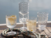 A practical set of wine glasses. Made from methylstyrene, an unbreakable material in transparent colour with a glass effect.
