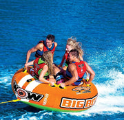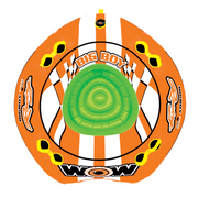 A big boat tube for big guys and girls or for several young kids. This inflatable towable can be ridden by 1-4 people. The large centre hole also allows for two young kids or a parent and their child to ride together or ride sitting on the edge with your feet in the middle. A traditional concept that provides a fun yet stable ride. The arrowed shaped design allows for more stability and control than a round towable tube.